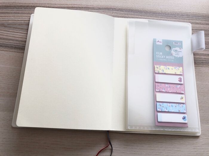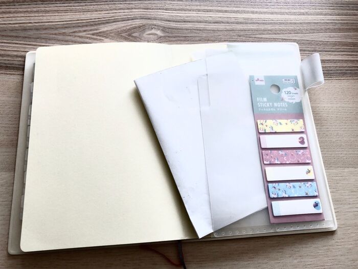 ダイソーの付箋もスッキリ収まります。クリアなので、入れているものも見えてわかりやすいです。