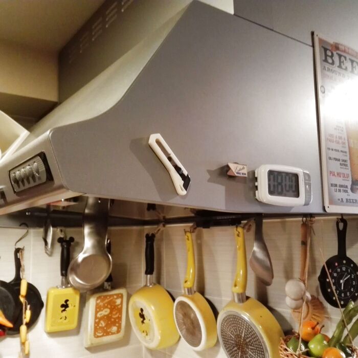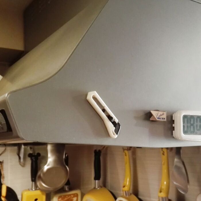 シート式のマグネットを両面テープでカッターに貼り付けます☺