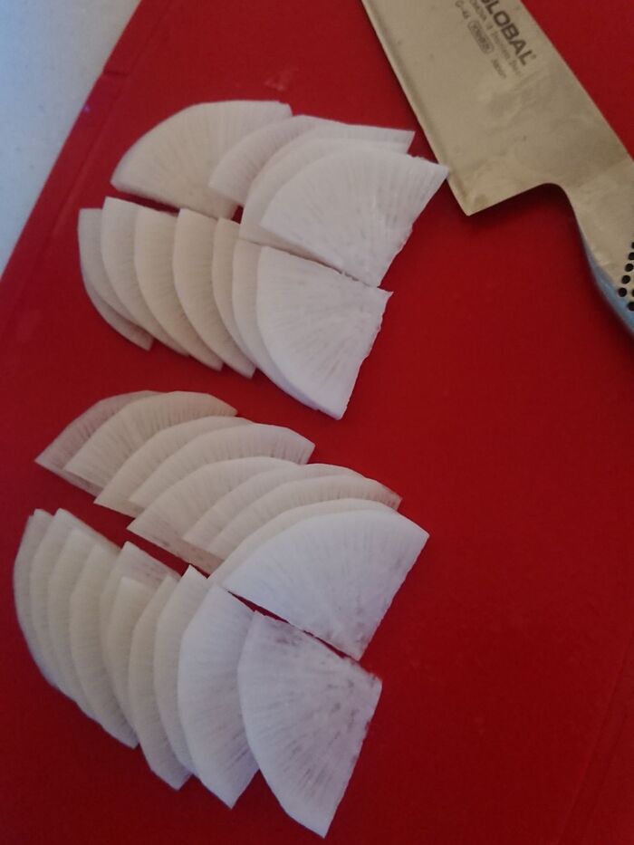 (生の大根も入れて、歯ごたえの違いで、二度楽しめます)