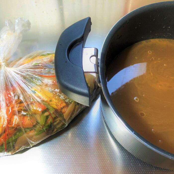 栄養満点でエコで節約もできるから なるべくこの野菜だしを使うようにしています