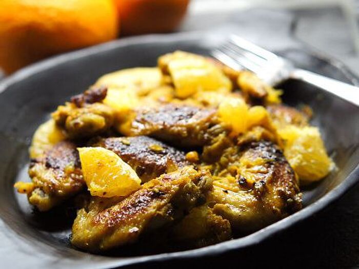 中火で温めたフライパンにオリーブオイルを大さじ1ほど(分量外)回し入れ、手羽先の皮を下にして、弱火にし蓋を閉めて様子を見ながらコンガリ焼く。