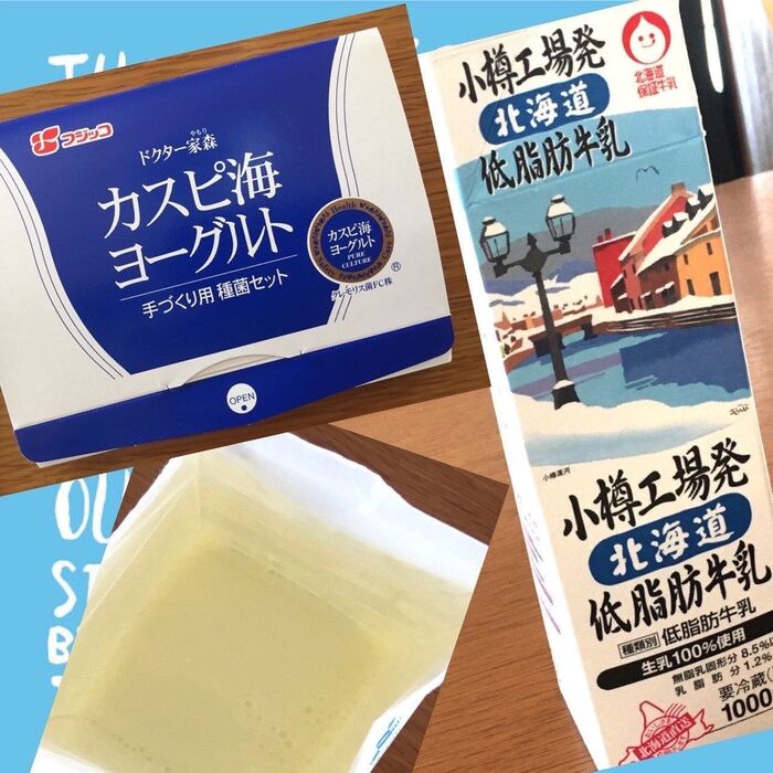 1.カスピ海ヨーグルト400mlを容器に流しいれまーす