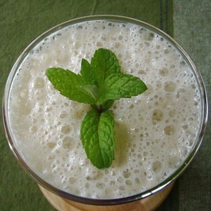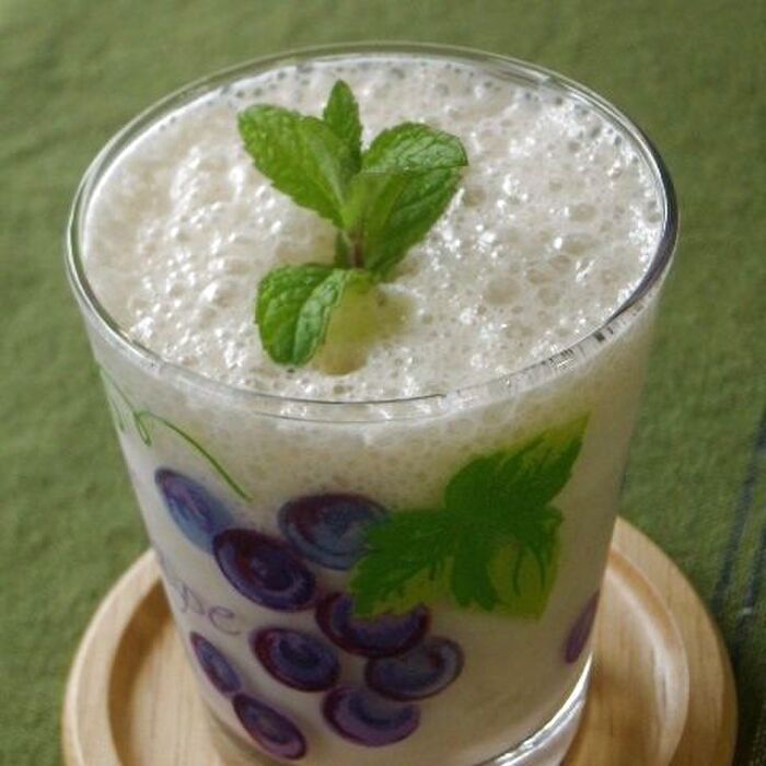 冷凍室から出したら、牛乳を加える前に、スプーンかフォークで、全体をかき混ぜて、バナナをほぐします。