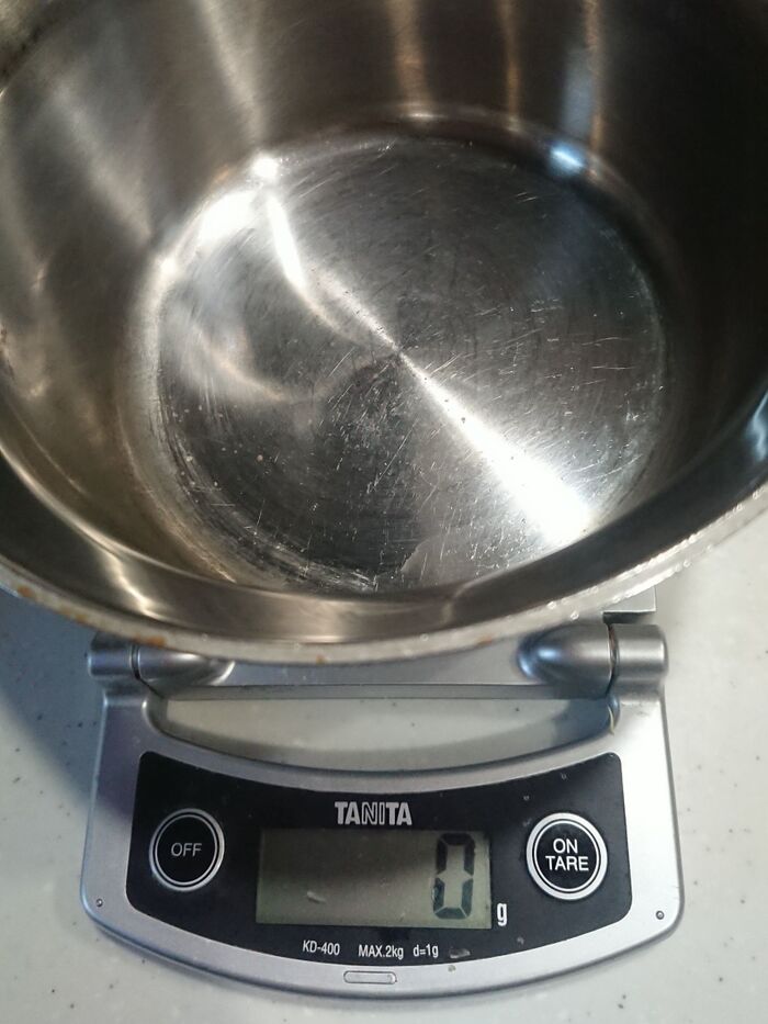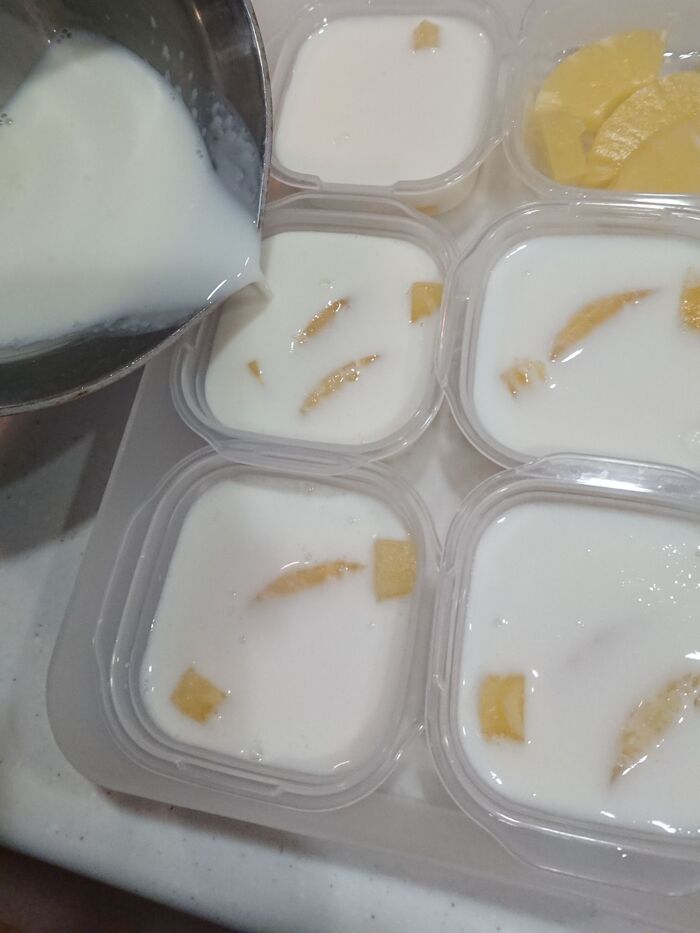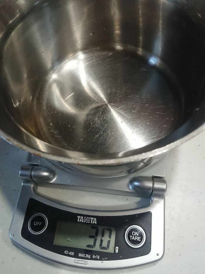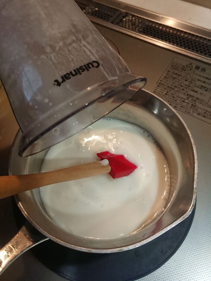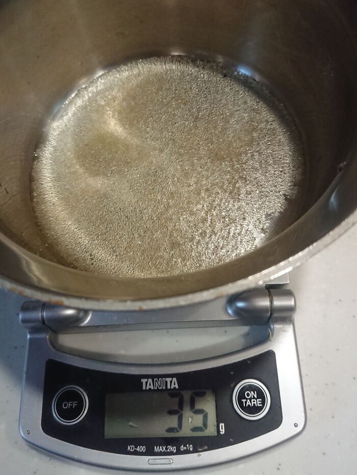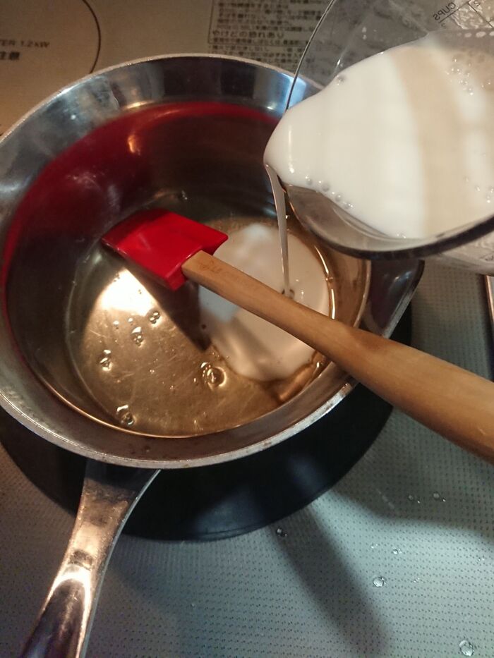 そこへ、5gの粉ゼラチンを振り入れて、ふやかします。