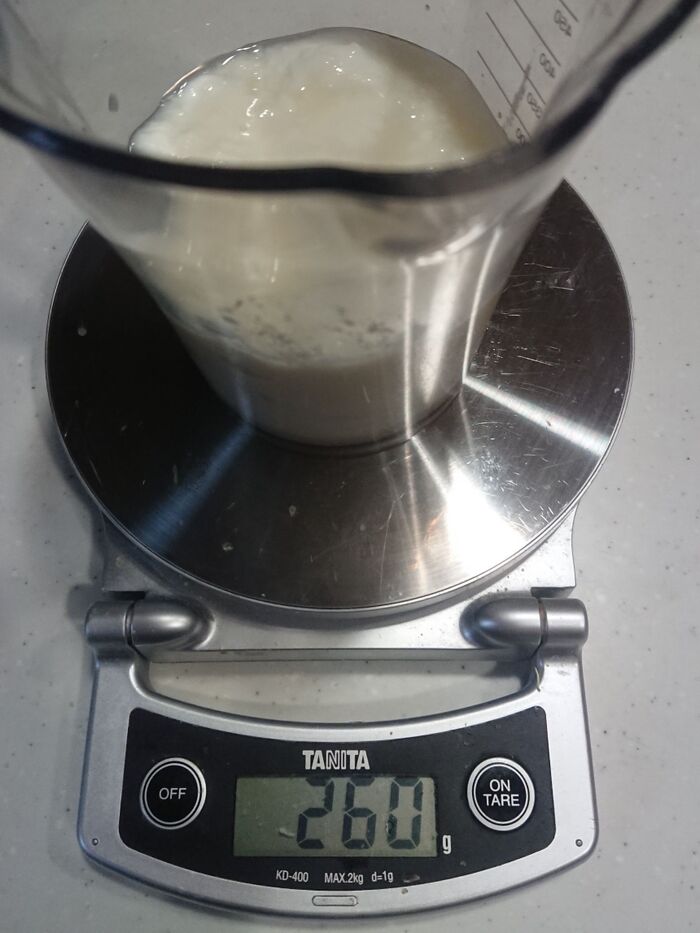 ブレンダー容器に、箱のプレーンヨーグルトを