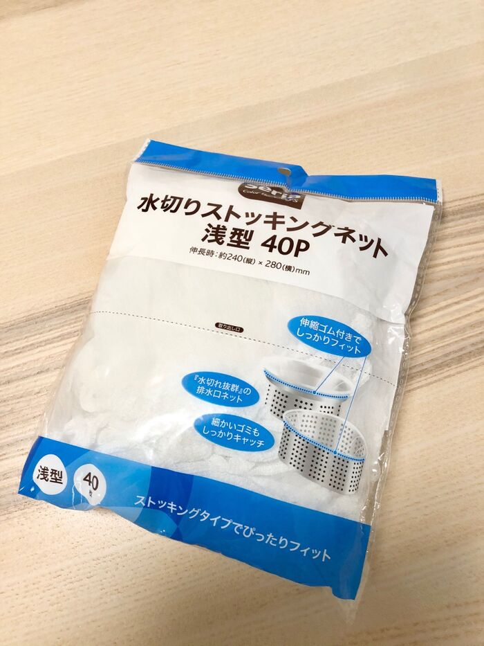 私が使っているのはこちら。セリアの水切りネット浅型40p