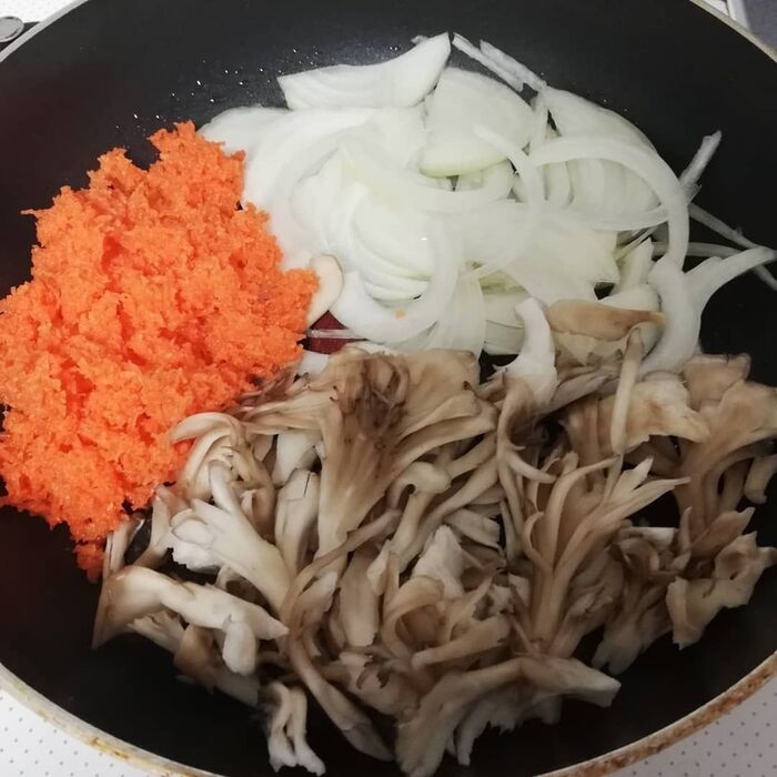 玉ねぎ→みじん切り。舞茸→裂く。人参→面倒なのですりおろしました(笑)