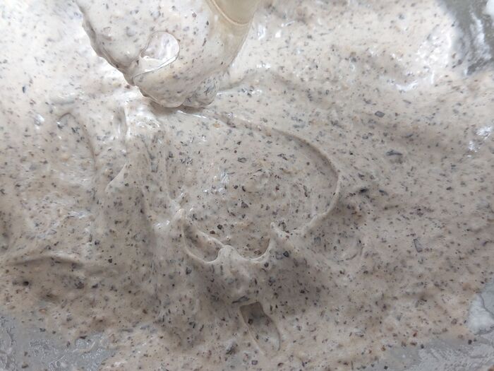 粒が大きいので・・・・ハンドミキサーにかけました。