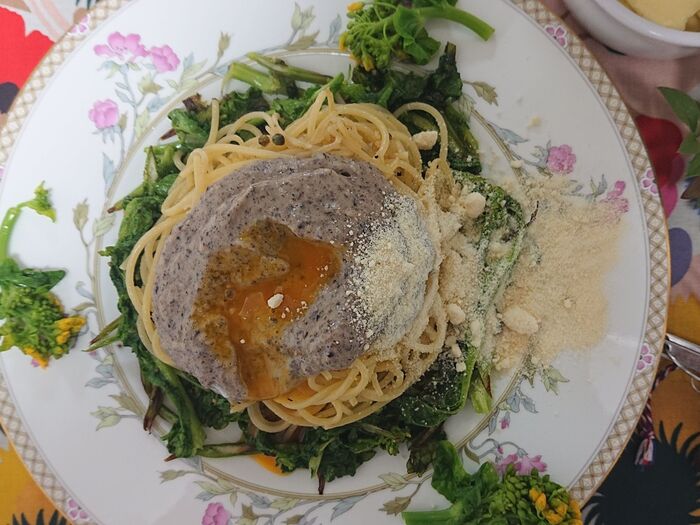 メレンゲと混ぜると、粘りが消えて・・・・・creamy!!