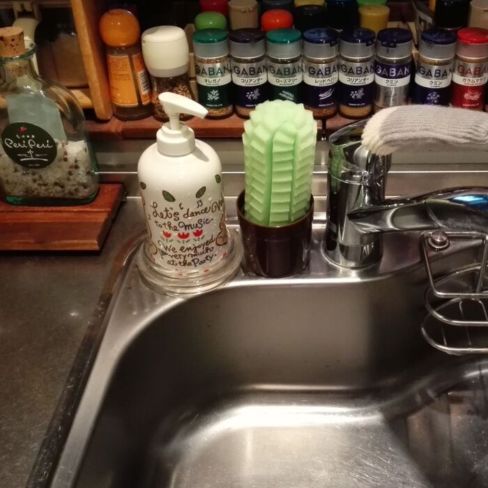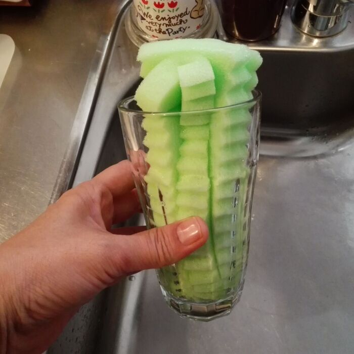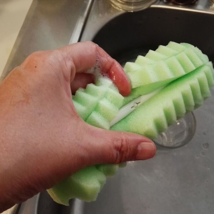洗っていて気がついた☺ 中央に棒が入っているのでフニャッっとへたらず、しっかり洗える❗