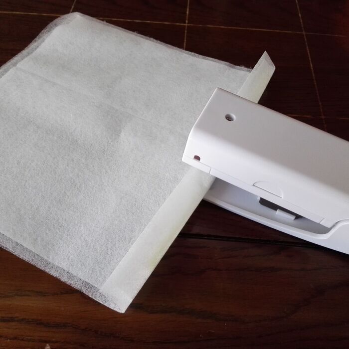上に折り返したら、シーラーで少しずづつ圧着していきます。