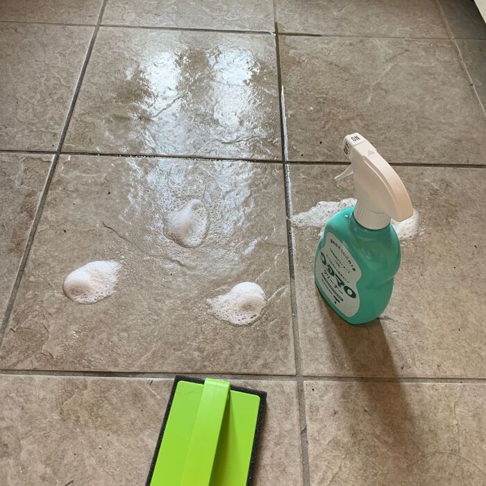 泡が消えないうちに、濡れ雑巾で拭く。