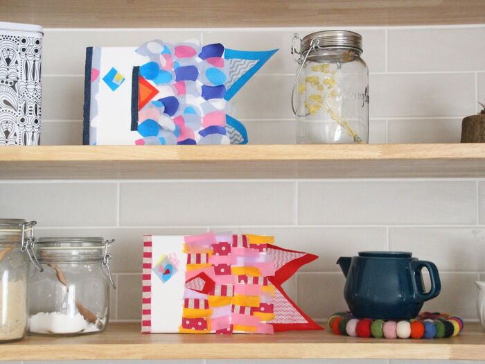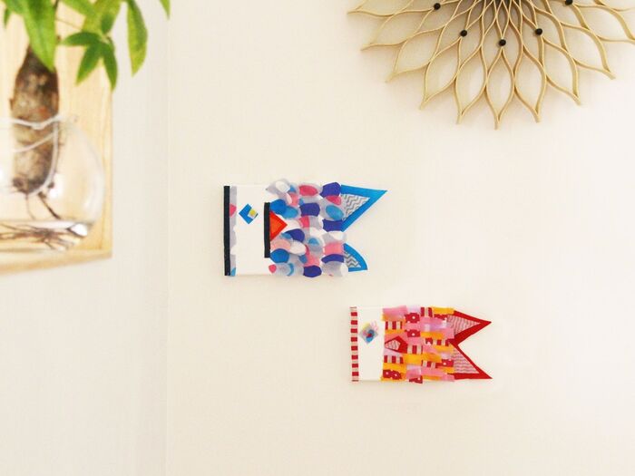 100均ダイソーのキャンバスパネルを使いましたが(以前購入)、ダンボールに布を貼って作った手作りキャンバスや枠付きのフレームでも大丈夫です!
