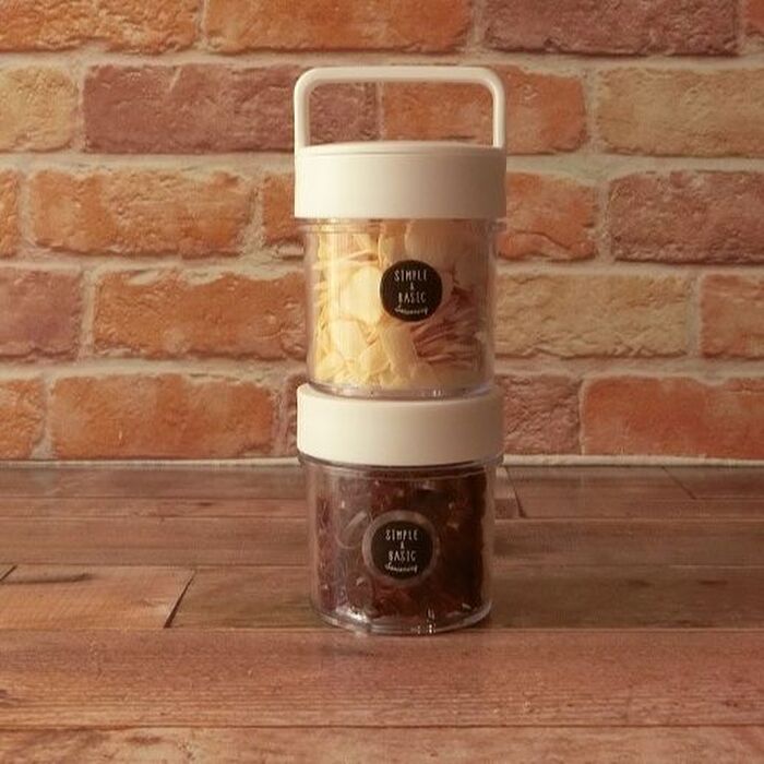 容器同士を積み重ねて時計回りに回すと、カチッとはまり連結できます。