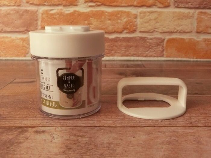 このスパイスボトルのすごいところは持ち手が取り外しできるところ。スライドさせると簡単に取り外せます。