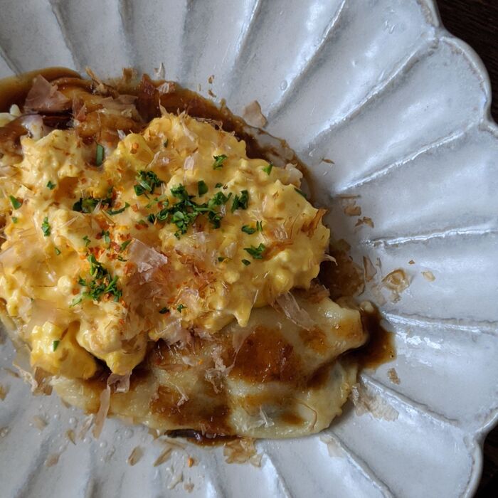 生地がモチモチ感があり、破けやすい為、フライ返しが難しいかもしれませんが全体に火が通っていれば無理に返さなくてもいいかもしれません。