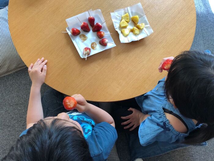 爪楊枝を持って、パクッとつまんで食べるのも楽しいようです♪