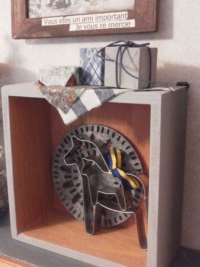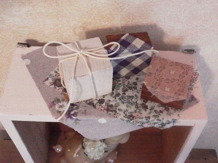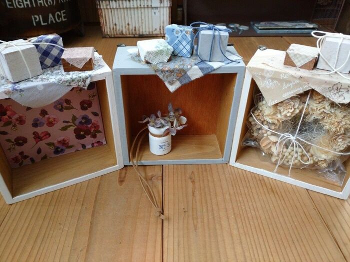 ボックスの色とはぎれの色とトーンが同じになるように揃えてみました。
