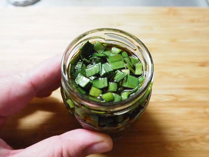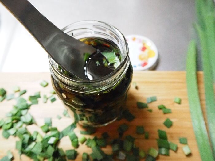 ・ニラ醤油は出汁なしでも十分美味しいですが、顆粒かつおだしを加えたり、めんつゆで作ったり、お好みの味つけで試してみてください。お肉やお豆腐にも合いますよ。
