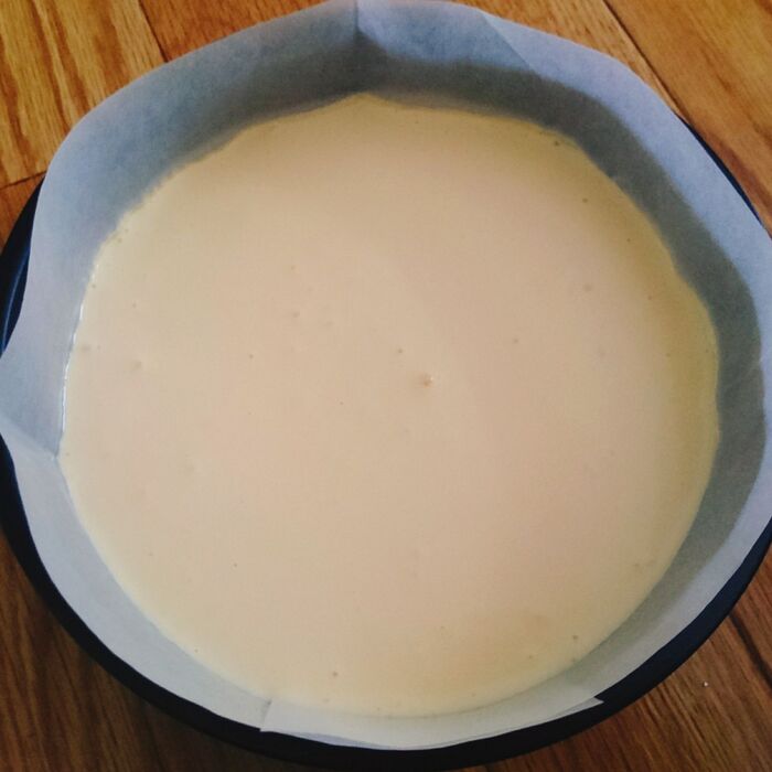 ケーキ型にクッキングシートを敷いておく