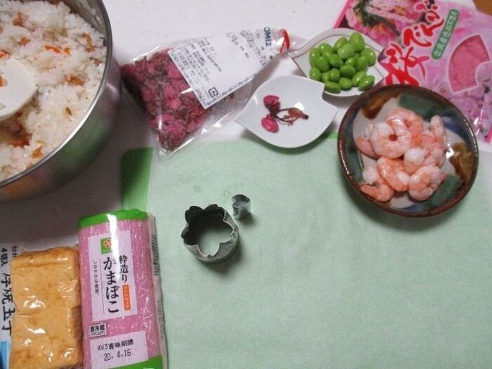 厚焼き卵も桜の抜型で抜いたものと、角切りのものを作っておく