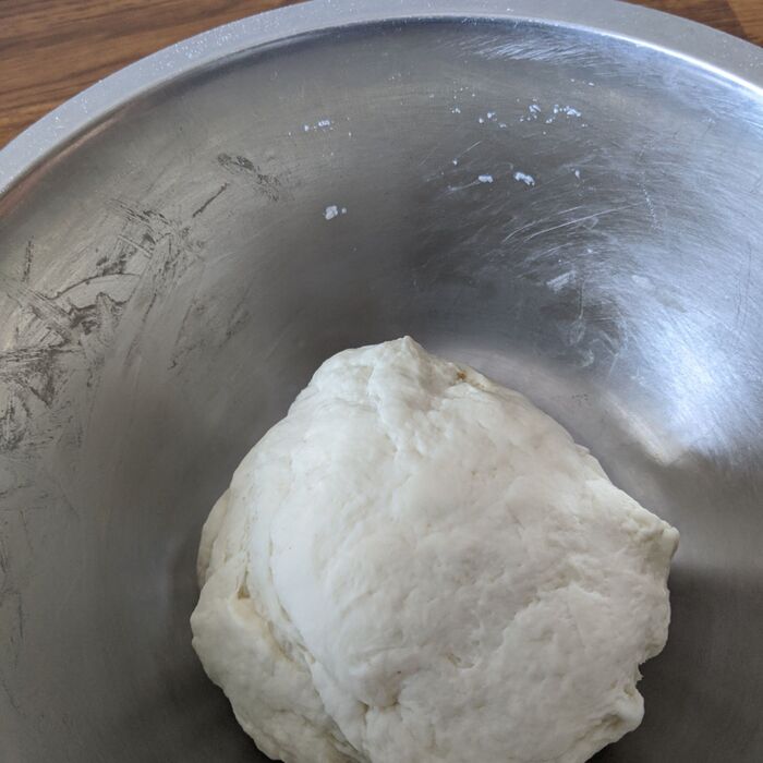 ボールに薄力粉と◎を合わせて、生地をひとまとめにし、しばらく手で捏ねていきます。