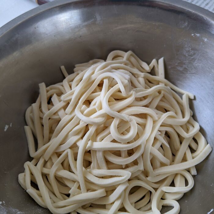 生地を結構捏ねる事で、コシのあるうどんができます。