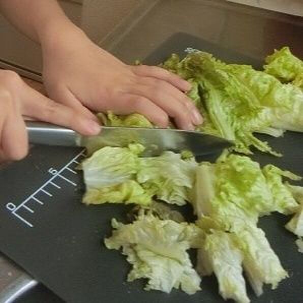 レタスは一口大に切ります。