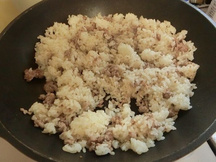炊きたてのご飯か、冷やご飯の場合は電子レンジで温めたご飯を使うとパラパラになります。