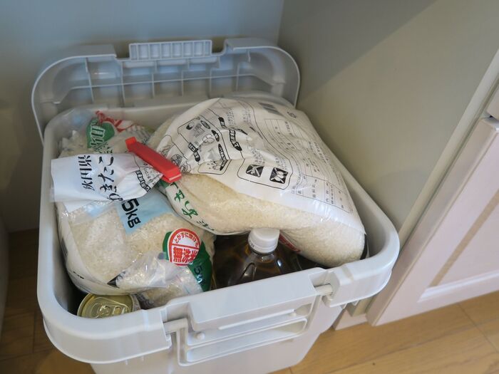 この頑丈収納ボックスは、キッチンばかりでなく、ベランダやお庭に置いて使っている方も多いそうで、私は現在外用にもう一つ欲しいなあと思っているところです。