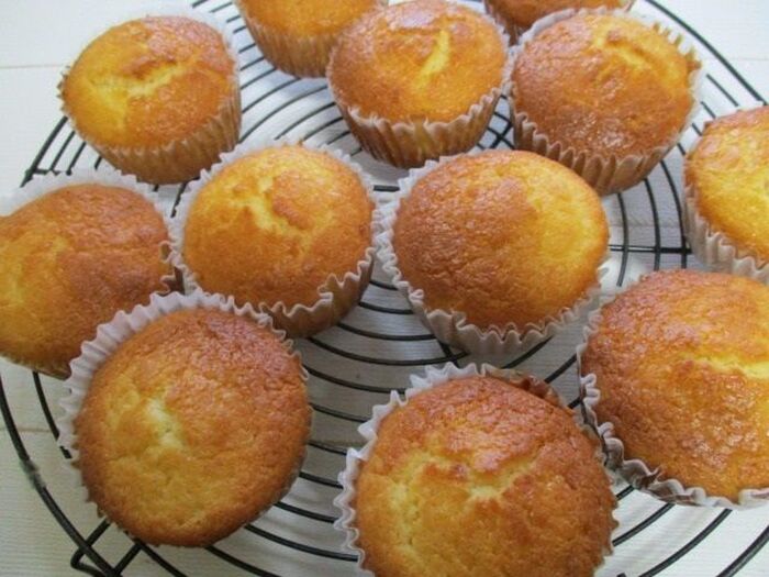 焼きあがったら、ケーキクーラーにカップケーキをのせ、冷まします