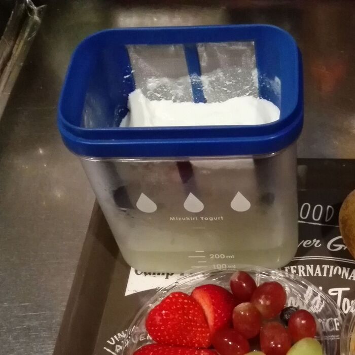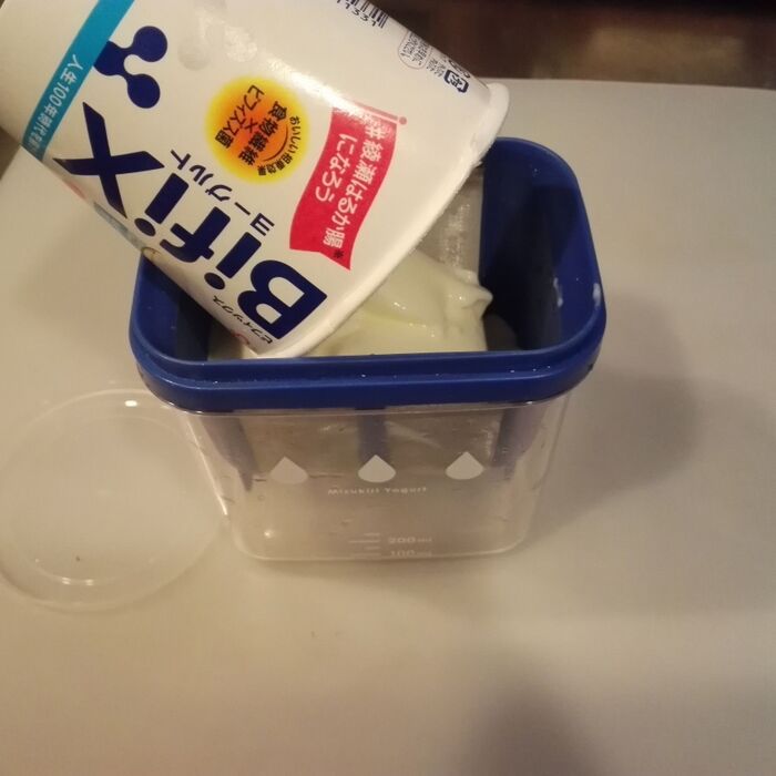 以前、購入したホイップクリームの容器の中にヨーグルトを入れて