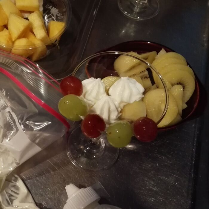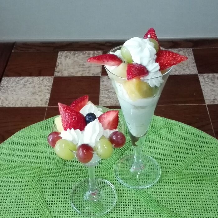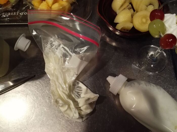 お好みのフルーツに、ヨーグルトを生クリームの様に絞れば🎵