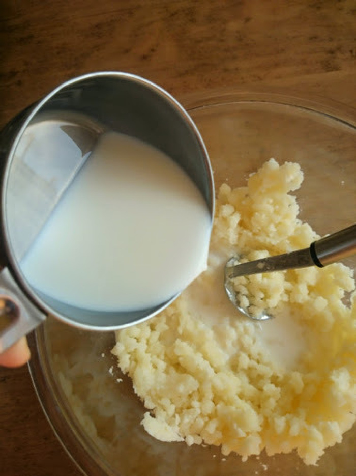 クリームポテトの硬さは、固めより、スプーンですっとすくえるくらいの柔らかさがおすすめ。