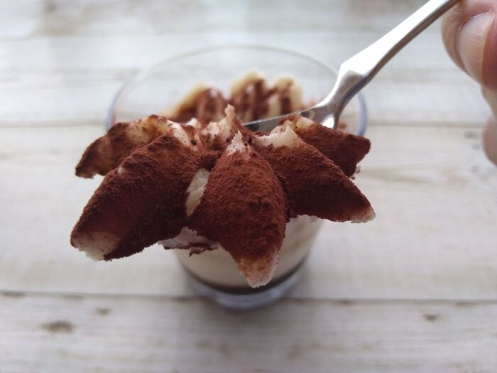 横から見ると、ちゃんとティラミス特有の層になっているのが分かりますね。