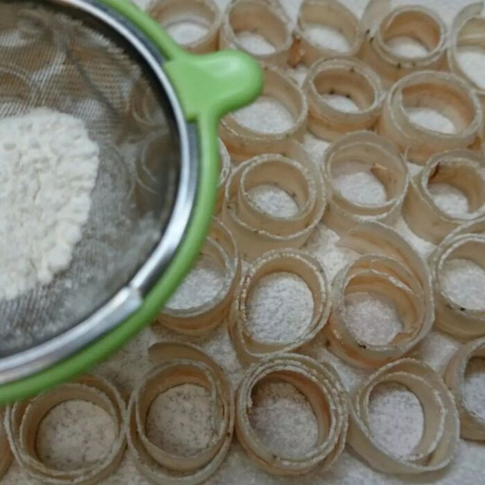 あんまり長くすると薄力粉の付きも悪いし揚げにくいです。