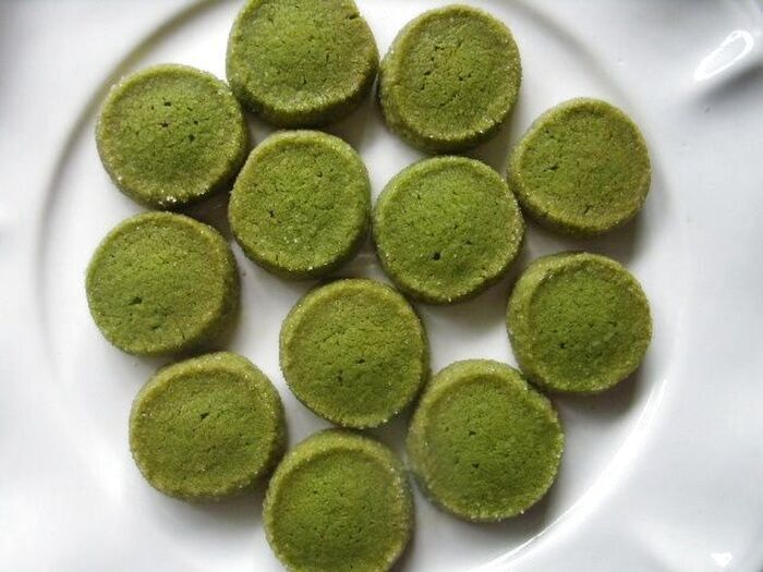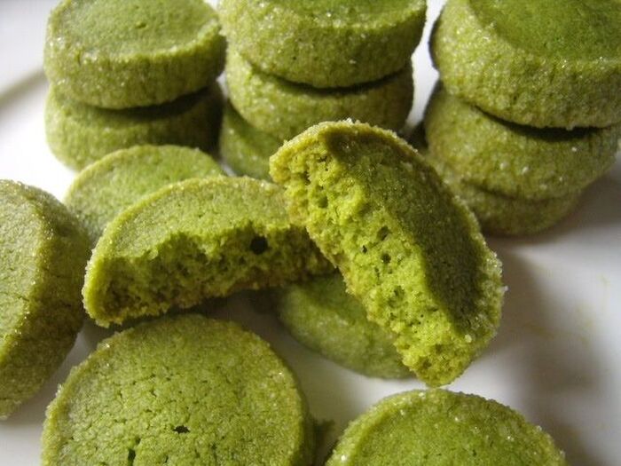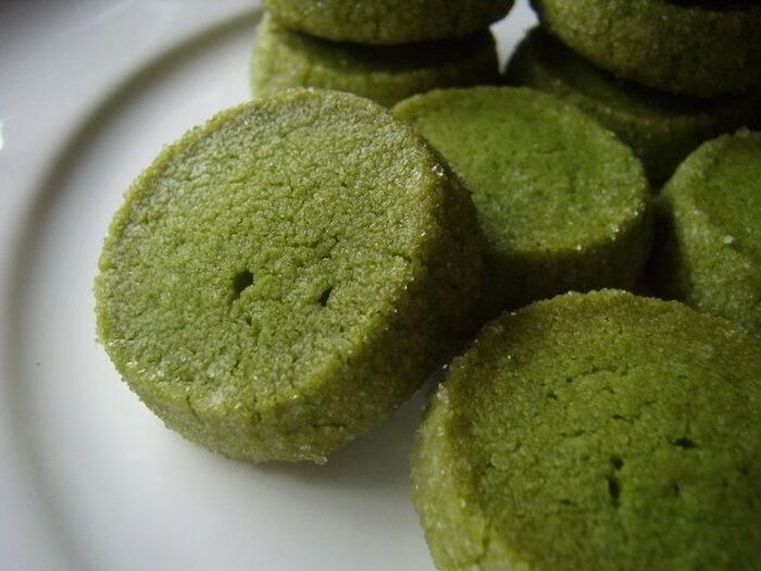 * 薄力粉に抹茶を茶こしで振り入れておく