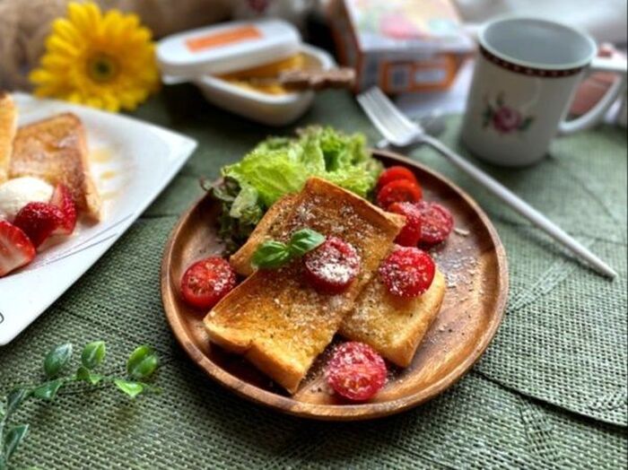 トマトと粉チーズ 黒コショウで甘じょっぱ風。