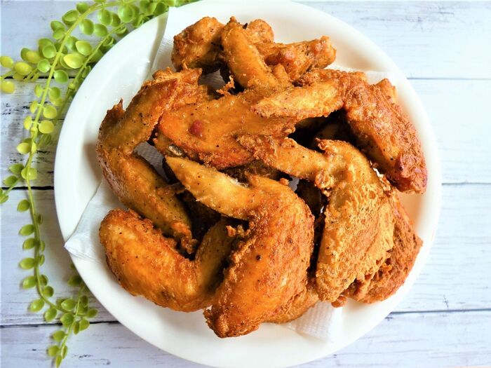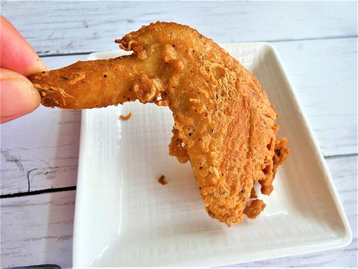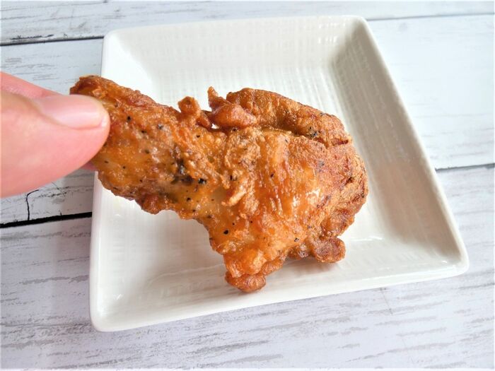 ザク旨!!スパイシー!!な唐揚げです!!揚げたては、衣ザクっと黒コショウ&スパイスが効いて本当あの味!!チキチキボーン!!幼稚園児ももりもり食べれる、大人はビールも進みます!!
