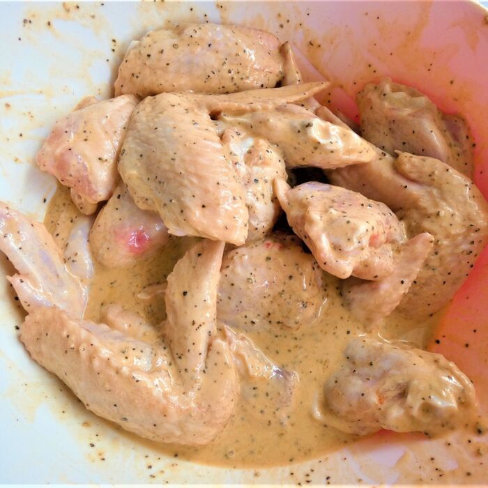 2.肉500gを加え、からめてから、なじむまで5~10分間おきます。
