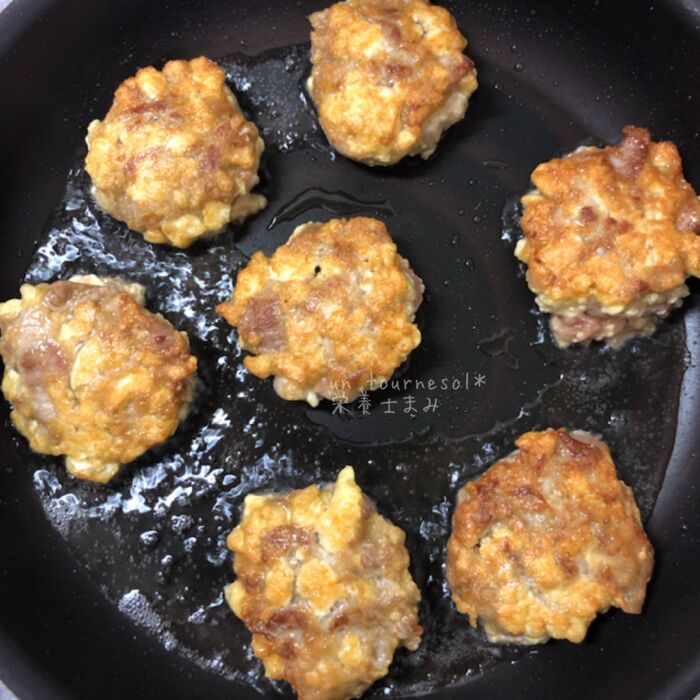 *形を整えてからすぐに、フライパンにのせると再度形を整えなくていいのと、崩れにくいです。