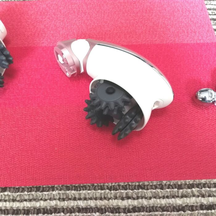 ★まず、お腹周りをやってみましたが、乾燥した肌ではひきつって少し痛さがあるので、保湿クリームを付けてやりました。5分で一旦スイッチオフになるので、時間をおいて3回続けた結果、お腹はほんのりピンク色になりポカポカ温かくなりました。お肉がブルンブルン揺れます。