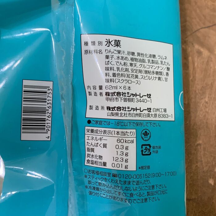 こちらは、シャトレーゼ店舗で購入しました。6本入って、¥237。