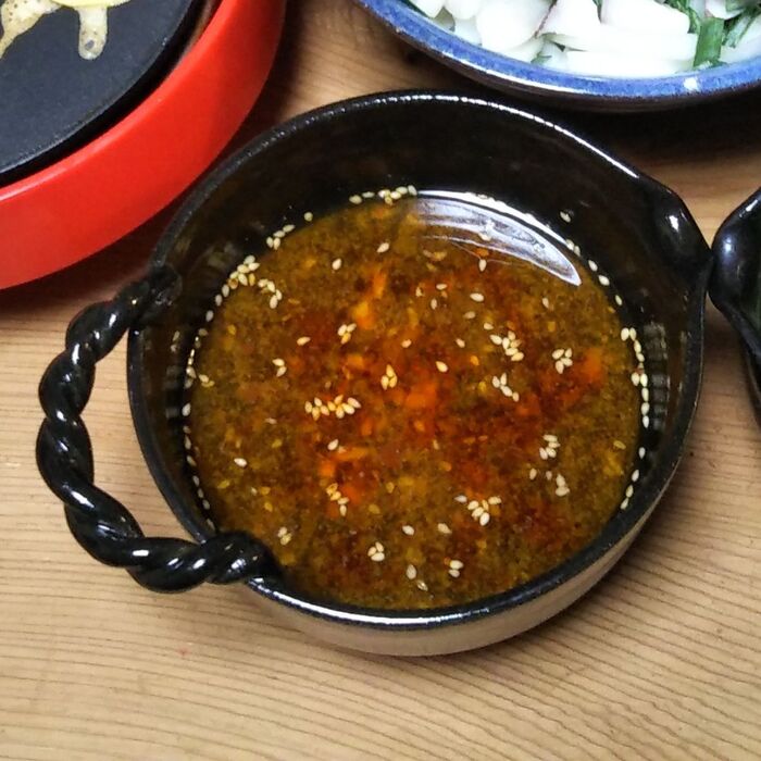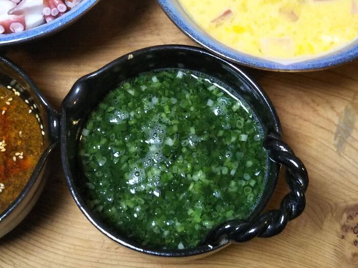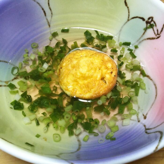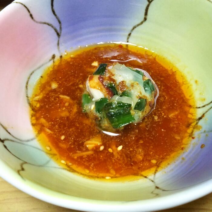 ①材料★に水を加え、電子レンジで10分程→小口ネギを加える(明石焼きのタレ用&だし汁用)
