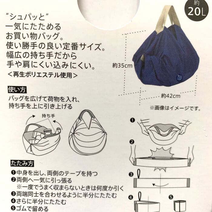 普通の買い物袋は一度広げるとたたむのが面倒ですが、こんなにストレスフリーなバックは今までみたことありませんでした♪