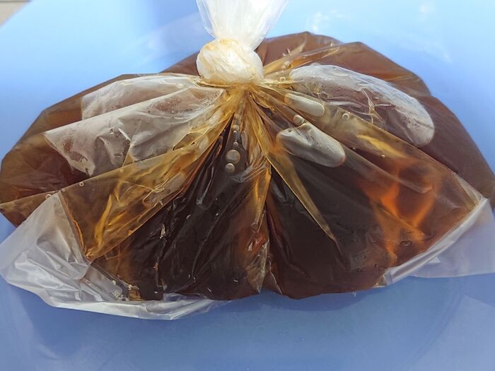 麺つゆ残ったら・・・・ビニールで冷蔵保存!! 一週間くらい行けます!!