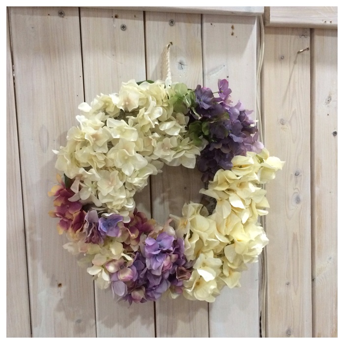 私は紫陽花で作りましたが、どんな種類の造花、ドライフラワーにも応用できます〜。