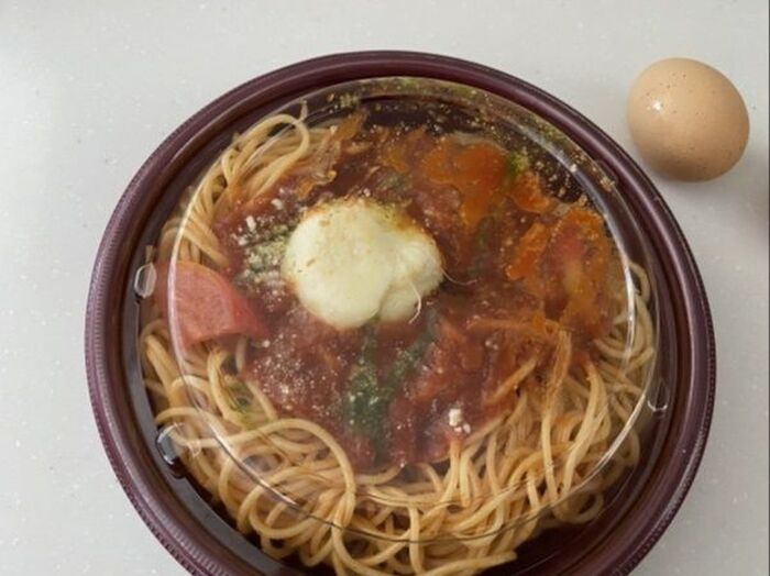 セブンイレブンで購入した「とろ~りチーズのトマトパスタ」を使います