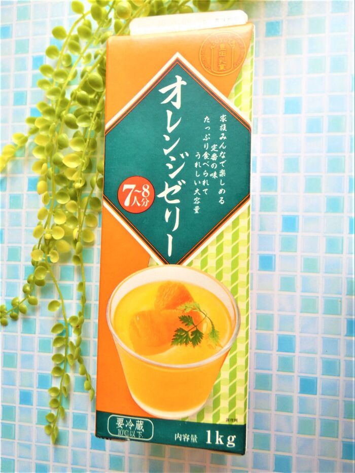 1キロオレンジゼリーです!業務スーパーで紙パックゼリーは、プリン・コーヒーゼリーなどもありますが、我が家は一番オレンジゼリーがお気に入りです!!