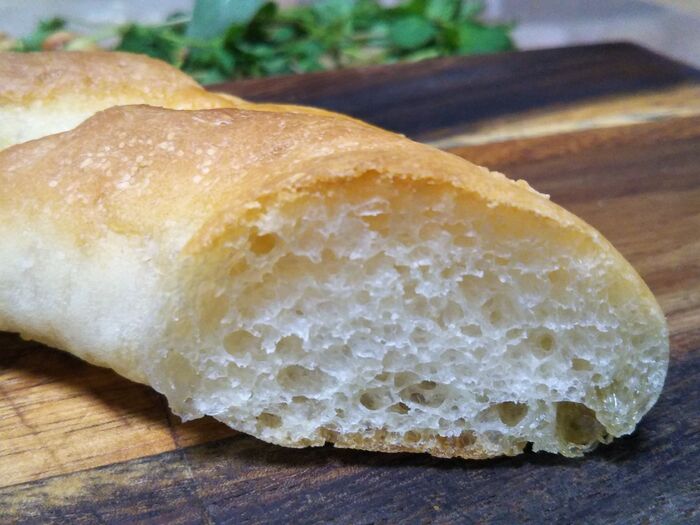 ※良く膨らんでいることを確認し、指に小麦粉をつけ、真ん中を刺してみて写真の用になればOK。